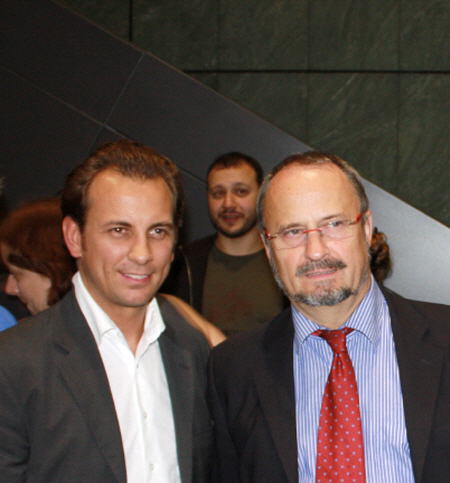 Oberbürgermeister Walter Hoffmann (rechts) und Dentalhaus Darmstadt Inhaber S.Slomkowski (links) |